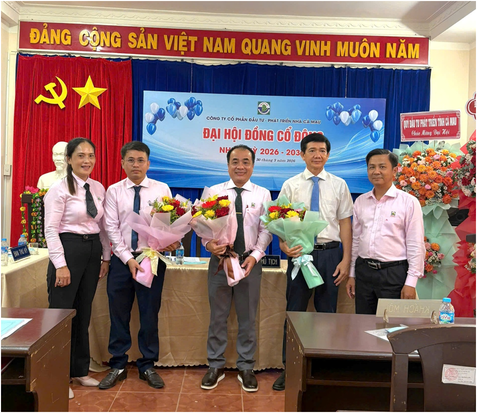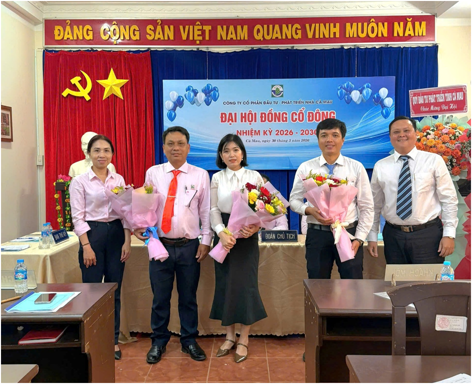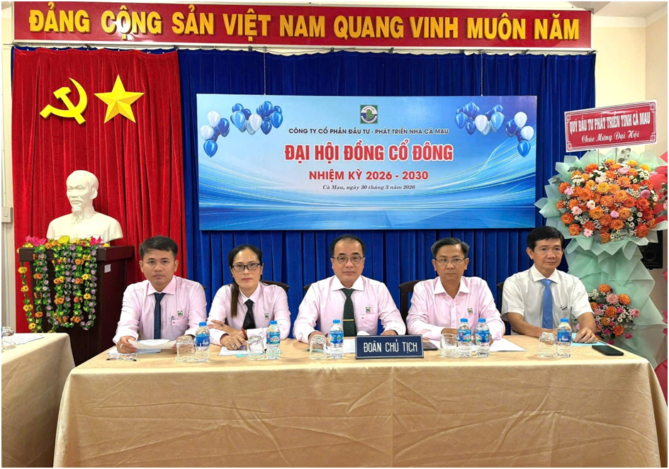 Sáng ngày 30/3/2026, tại Hội trường Công ty cổ phần Đầu tư – Phát triển nhà Cà Mau diễn ra Đại hội đồng cổ đông nhiệm kỳ 2026-2030.